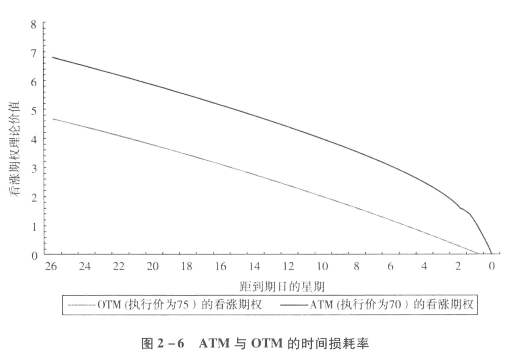 | Theta | 期权时间价值损耗的变化量 | 一、价外、平价距离到期日合约价值衰减曲线图