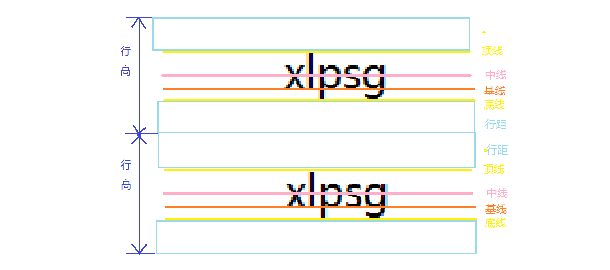 首先,一行文字有顶线、中线、基线、底线、行高,具体如图所示: