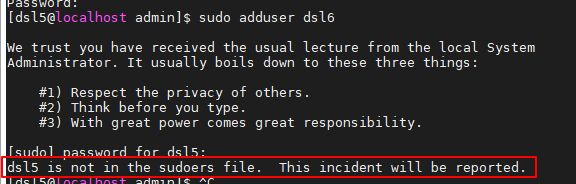 刚创建的用户不在sudoes file,sudoers file是可以行使root权限sudo命令的文件,所以如果普通用户想使用sudo权限来操作命令,那么先把普通用户加入到sudoers file里边去