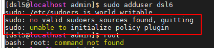 如果不修改的话,会报如下错误,无效的sudoers文件