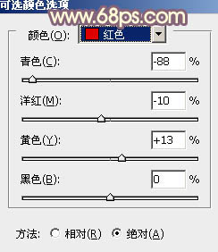 8、创建可选颜色调整图层,对红、白、黑进行调整,参数设置如图14 - 16,效果如图17。这一步适当减少图片中的红色,并增加淡黄色。