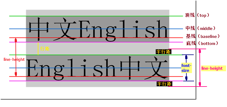 定义:行高是指文本行基线 baseline 之间的垂直距离
