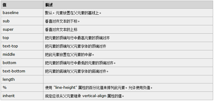 定义:使行内元素的基线相对于该元素所在行的基线的垂直对齐