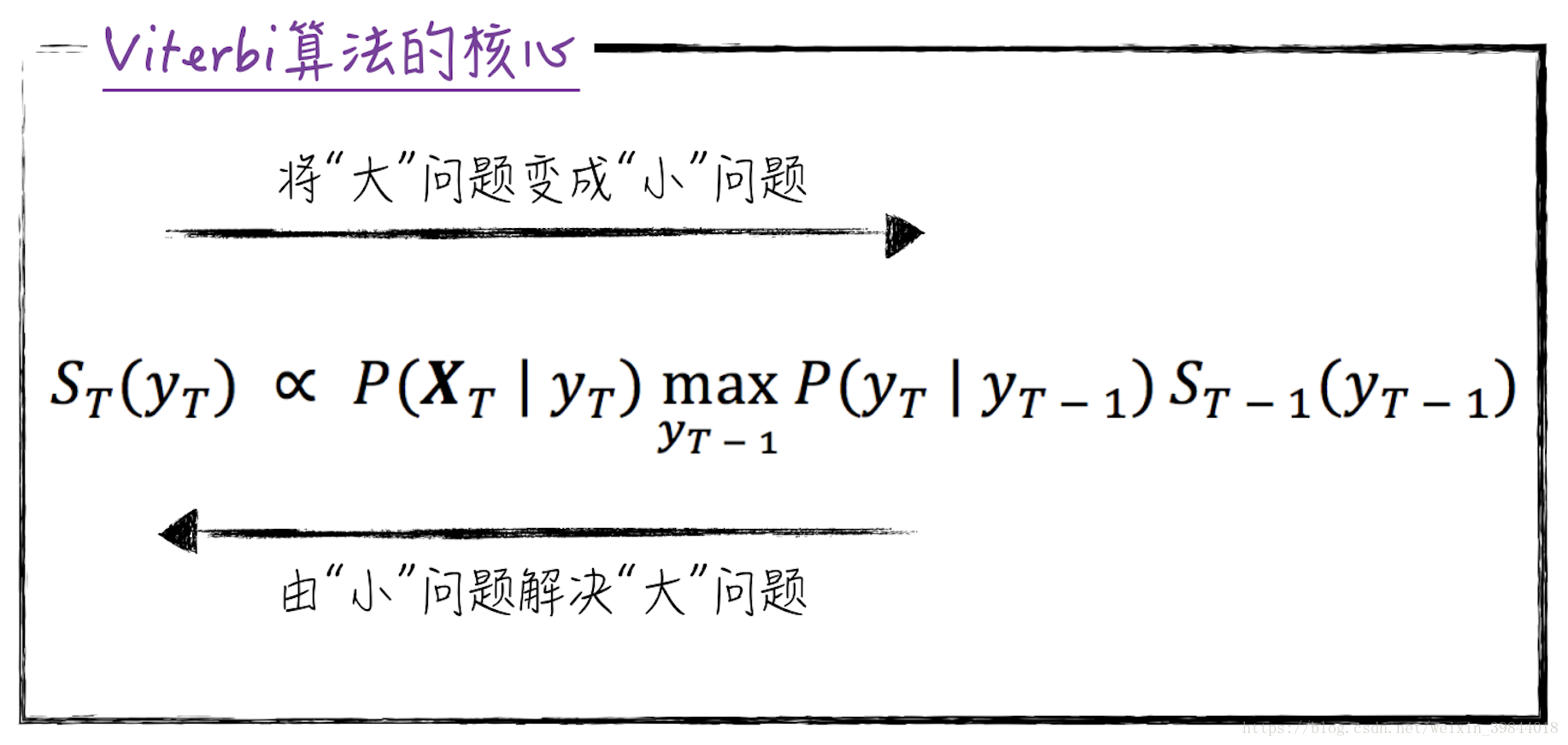 回到隐马尔可夫模型,讨论上面多次提到的Viterbi算法5,该算法负责求解模型预测结果,公式(2)。