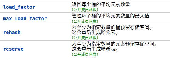 管理最大加载因子(每个桶的平均元素数)。若加载因子超出此阈值,则容器自动增加桶数。