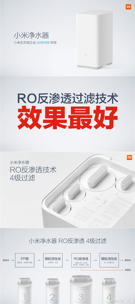 继小米电视新品发布后,大家一直在猜测第二个公布的新品到底是啥,千呼万唤使出来,小米净水器向大家发布新品,超强4级过滤: