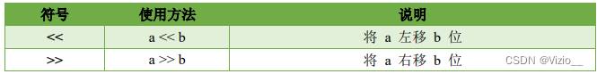 移位运算符包括左移位运算符和右移位运算符,这两种移位运算符都用 0 来填补移出的空位。如下表所示。