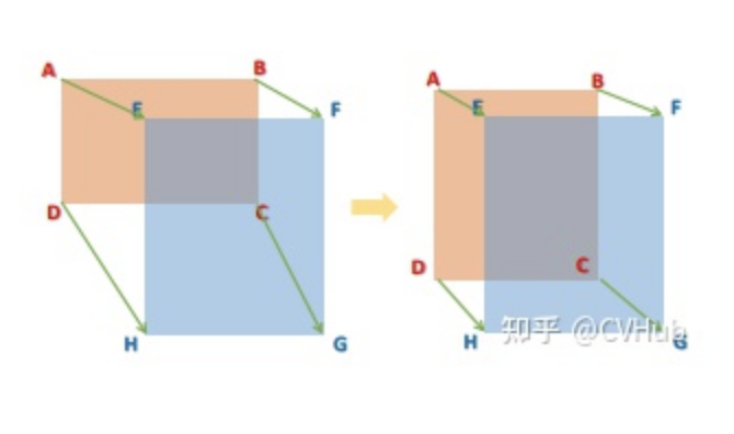 通过观察这个公式,可以直观地感受到,在权重迭代过程中,模型不断地将RP的四个顶点拉向GT的四个顶点,直到它们重叠为止,如下图所示: