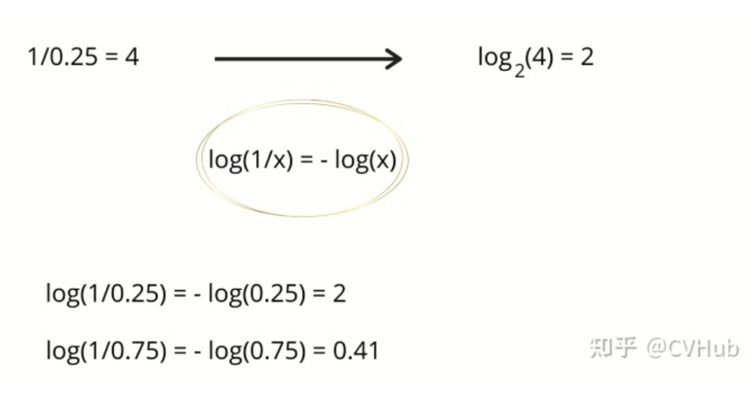 现在,如果气象台说第二天会下雨,那么你的不确定性就降低了4倍,也就是2比特的信息。不确定性的减少就是事件概率的倒数。在这种情况下,25%的倒数是4,log(4)以2为底得到2。因此,我们得到了2位有用的信息。