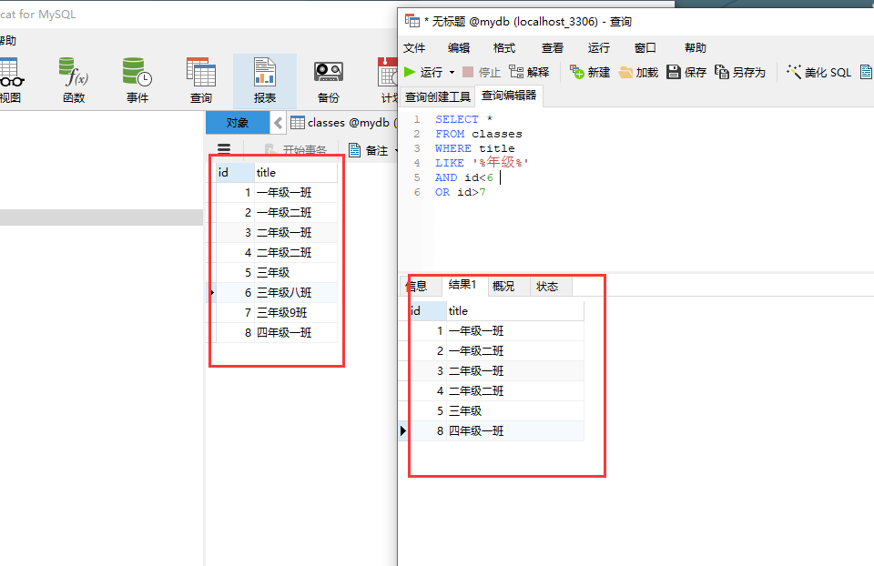 FROM classes //从classes数据表中