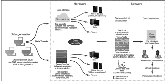 大数据分析目标可以总结为以下几类:获得知识与推测趋势,分析掌握个性化特征,通过分析辨识真相以临床诊疗为例,大数据的应用是基于患者信息等数据通过挖掘技术及合理推测指导患者个体化治疗,具体流程如图所示。患者到医院就诊,初诊后会产生体格检查、实验室检查及影像学检查等数据,数据经传送至云端或其他存储器,进而分散存储到移动设备、个人计算机,通过数据分析、数据挖掘、可视化分析等则形成最终报告,医生或专家则通过分析报告指导临床决策,实现患者个体化治疗。