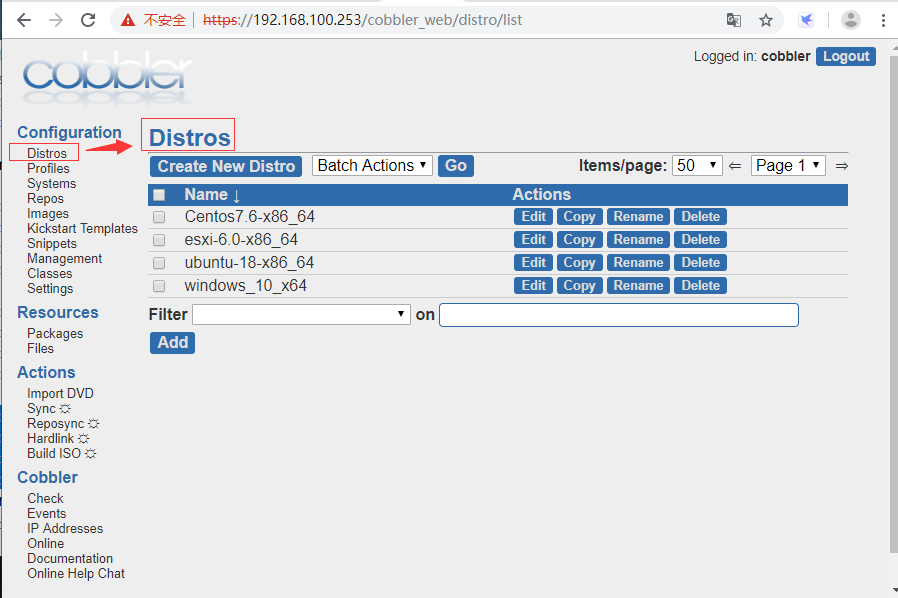 cobbler import --name=CentOS-6.10-x86_64 --path=/mnt