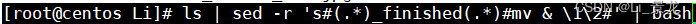 ls显示当前目录中的文件(也可以使用find查找以.jpg结尾的文件),将执行结果发送给管道右边的sed;sed -r可以使用扩展命令,第一个括号内的内容取自“stu_10299-n”略过_finished,再取“.jpg”字符串,然后通过12合并在一起就可以组成我们想要的文件名称。但是改名操作一般是使用MV命令完成的,MV的格式为:mv 原文件名称 新文件名称。所以我们组成新文件名称后,还需将原文件名称进行添加,此时可以使用/0或&来进行提取原文件名称。&的含义是未修改前的内容,/0是0分组,也就可以识别成更改前的内容。所以,mv & 12,进行改名操作,最后将结果交给bash进行执行,得到最终结果。 | ||||