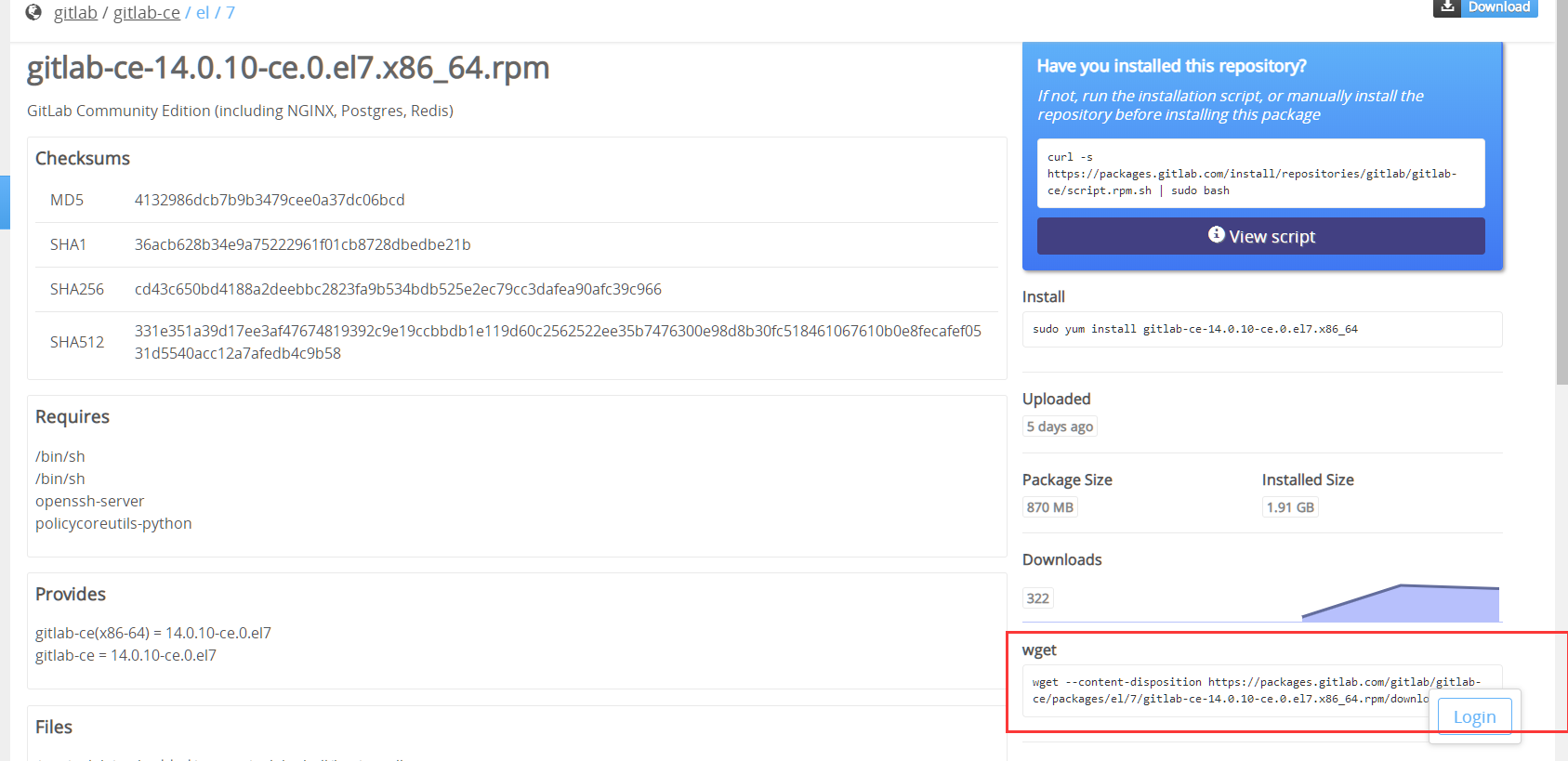 [root@iZm5e452n3se0jvpdlgbdpZ local]# wget --content-disposition https://packages.gitlab.com/gitlab/gitlab-ce/packages/el/7/gitlab-ce-14.0.10-ce.0.el7.x86_64.rpm/download.rpm