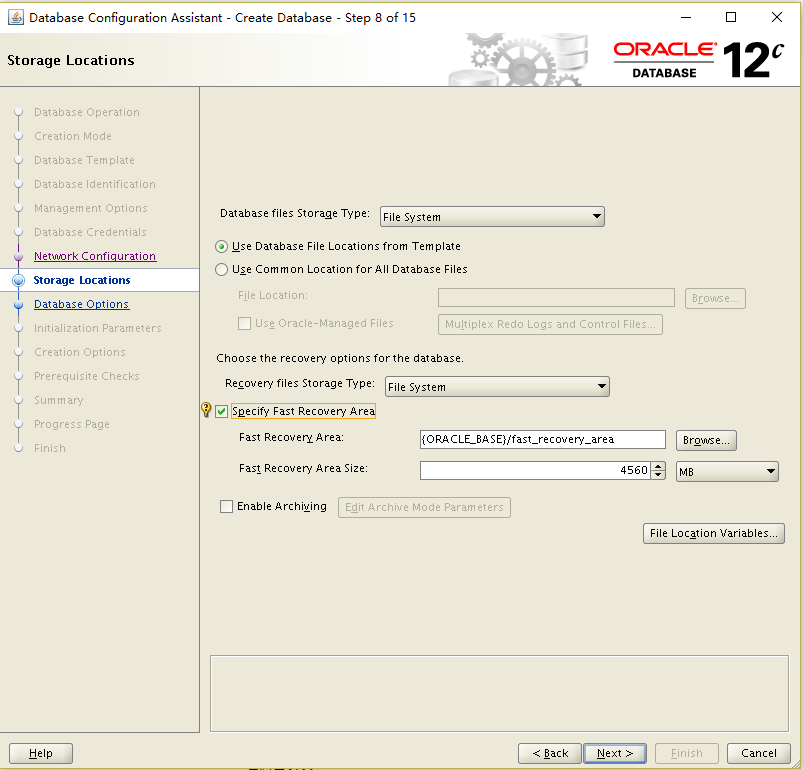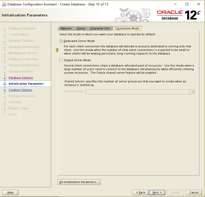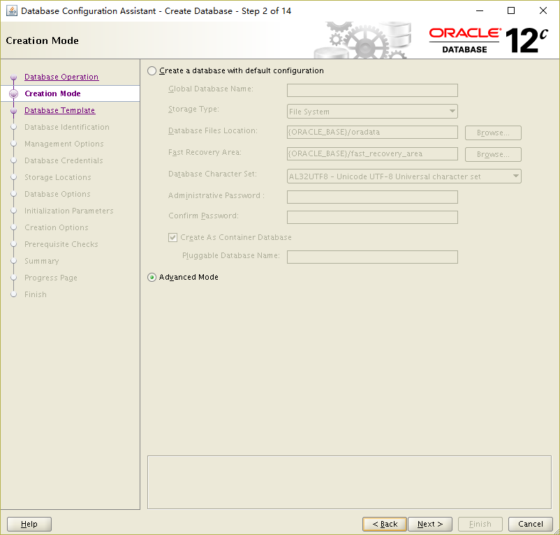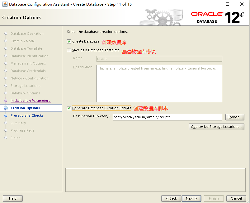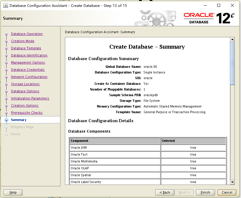 Database Configuration Assistant when a database is created