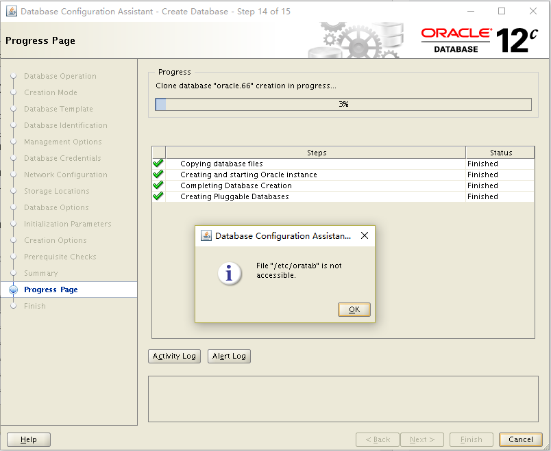 运行完root.sh后,点掉Database Configuration ...弹窗,最后的Finish点击Close。