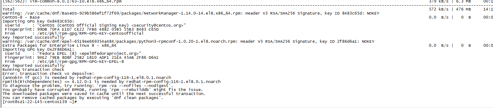 执行dnf -y --releasever=8 --allowerasing --setopt=deltarpm=false distro-sync命令报错