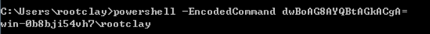powershell -EncodedCommand dwBoAG8AYQBtAGkACgA=