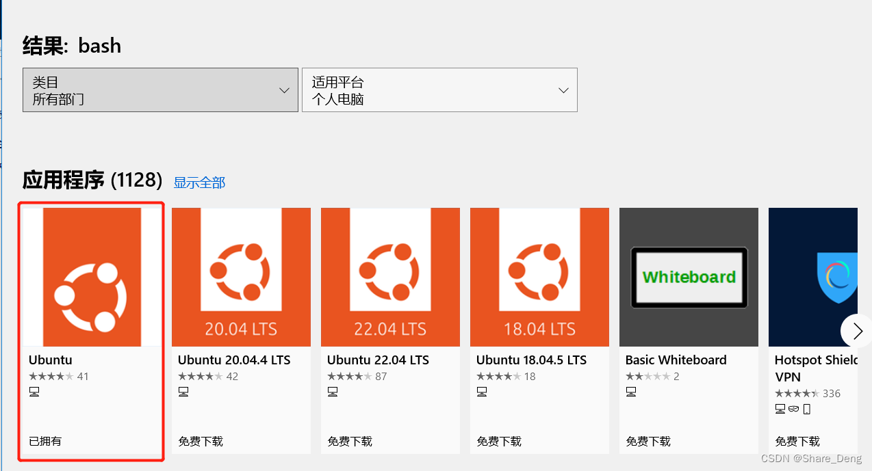2.2与应用商店,Microsoft store 下载对应的应用,搜索 bash