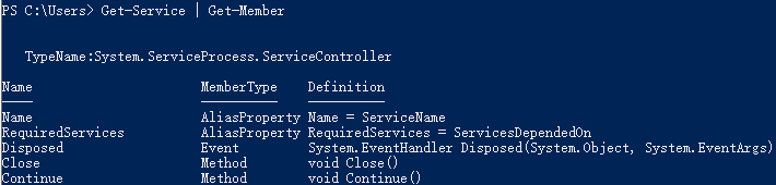 显示get-service cmdlet所输出对象的成员的信息