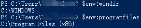 所有环境变量的记录保存在env:虚拟驱动中,因此可以列出所有环境变量。一旦查出环境变量的名字就可以使用$env:name访问了。