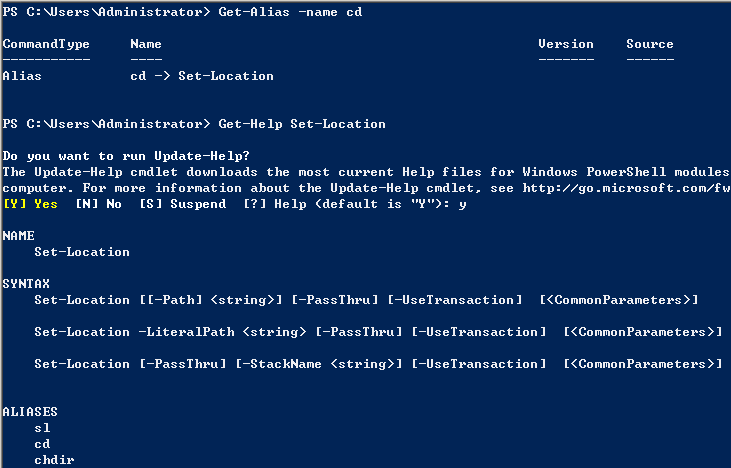 查看cmd下常用命令在powershell对应具体哪条指令,查看帮助信息,并运行示例程序