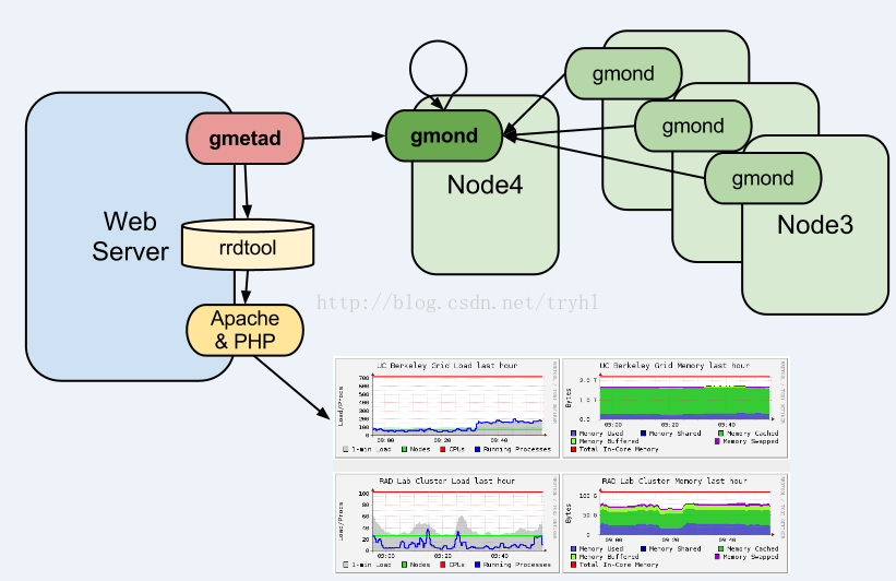 Gmond,gmetad,rrdtool,Apache,PHP以及一个展示的web