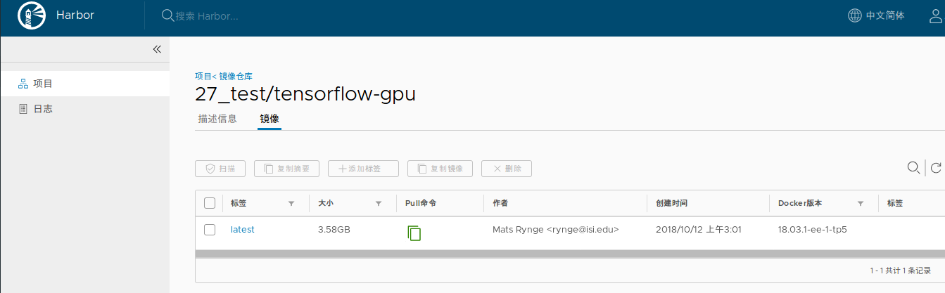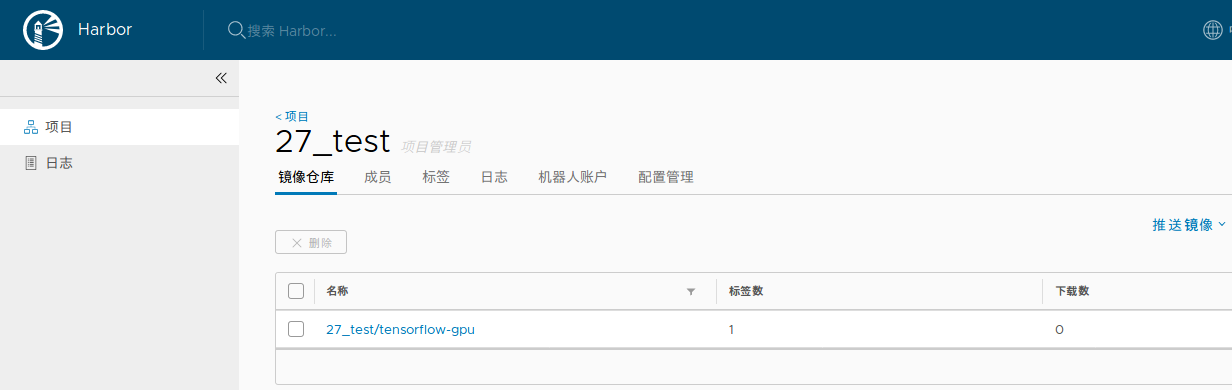 刷新自己网页端的harbor镜像管理,就可以找到自己推送的镜像