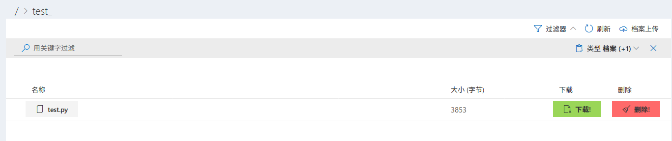 将代码和数据通过网页端进行上传(注意是在 test_ 文件夹存放的 test.py 文件)