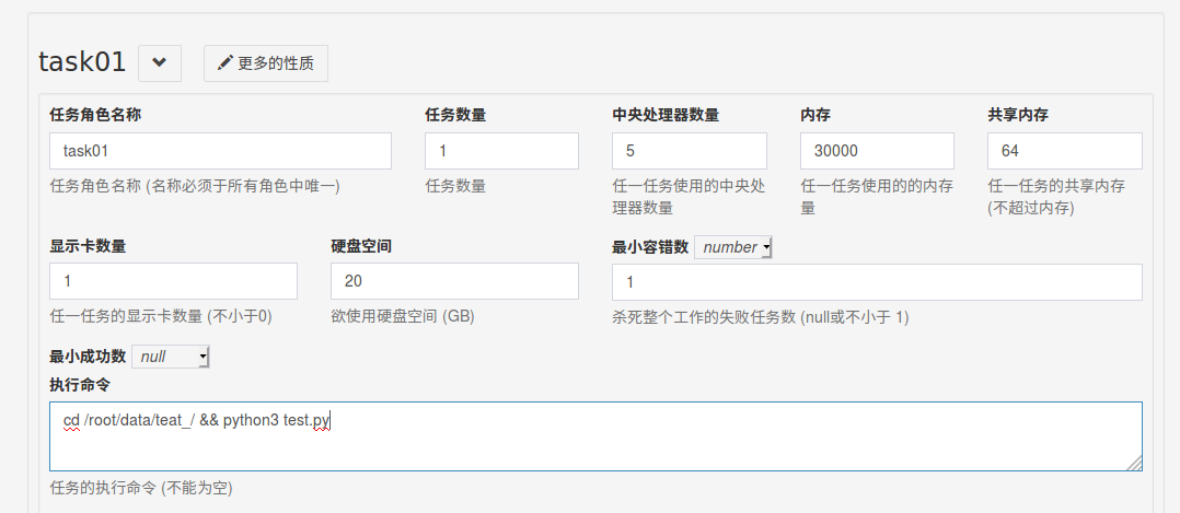 显卡类别选择 generic ,任务角色清单自己对应修改就可以了(共享内存一般为2~4G就行了)