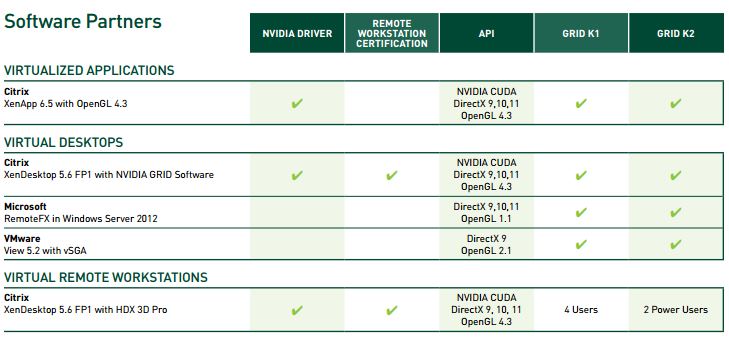 跟 Intel 的情况差不多,Nvidia K1/K2 GPU 也有 GPU 全虚拟化技术,但是目前也是不支持 KVM,而是只支持几家主流的虚拟化软件比如 Hyper-V 和 VMware 等(资料来源)。