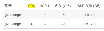 (2)Amazon GPU 虚拟机,可用于 3D 应用程序流、机器学习、视频编码和其他服务器端图形 或 GPU 计算工作等负载,包括 Linux GPU 虚机和 Windows GPU 虚机。虚拟机配置如下:
