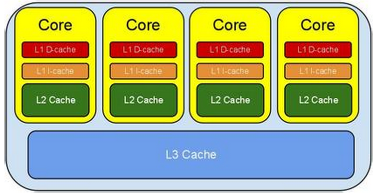 为了解决此问题,传统解决方案是使用缓存技术。通过给 CPU 设立多级缓存,能大大地降低存储系统的压力:
