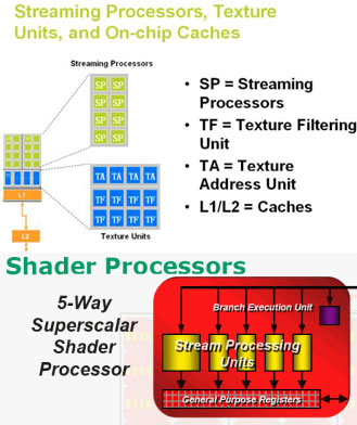 图3 NVIDIA和AMD使用了两种不同的流处理器架构