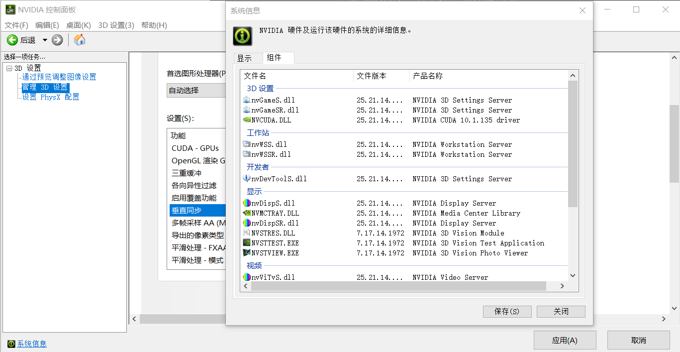 - 点击 帮助 — 系统信息 — 组件 — NVCUDA.DLL 可以看到CUDA的版本为10.1