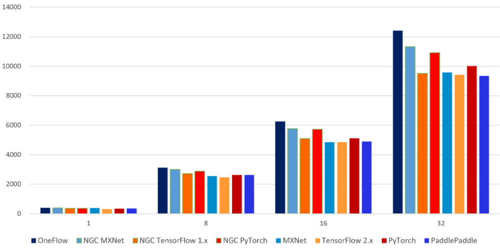 7 个框架在 ResNet50-v1.5 模型上的吞吐率对比