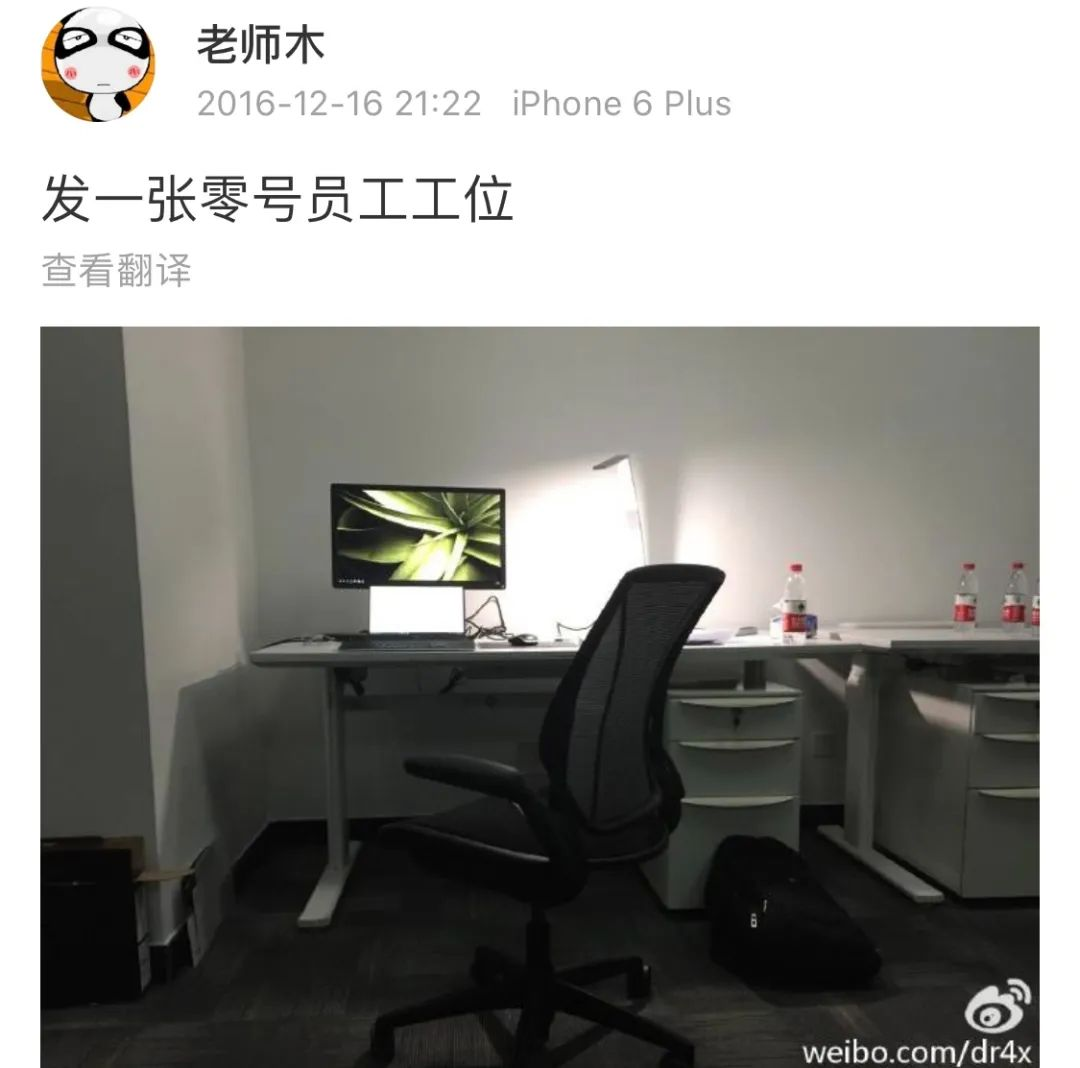 2016 年 12 月,袁进辉在微博发布零号员工工位照片