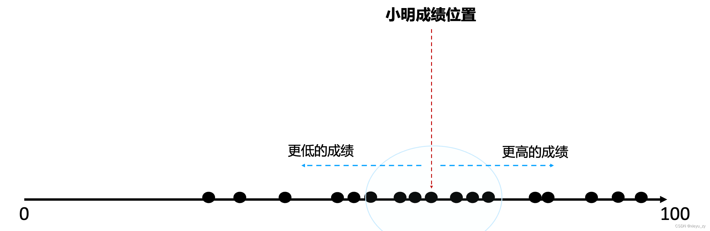 为了更好地理解问题,我们举一个更加形象的例子,所有同学的成绩:在0-100的直线上分布,小明同学的成绩在直线的一个位置,假设有一个方法,可以从小明成绩的位置“向两端走”,“距离最近”的点就是最接近小明成绩的人。