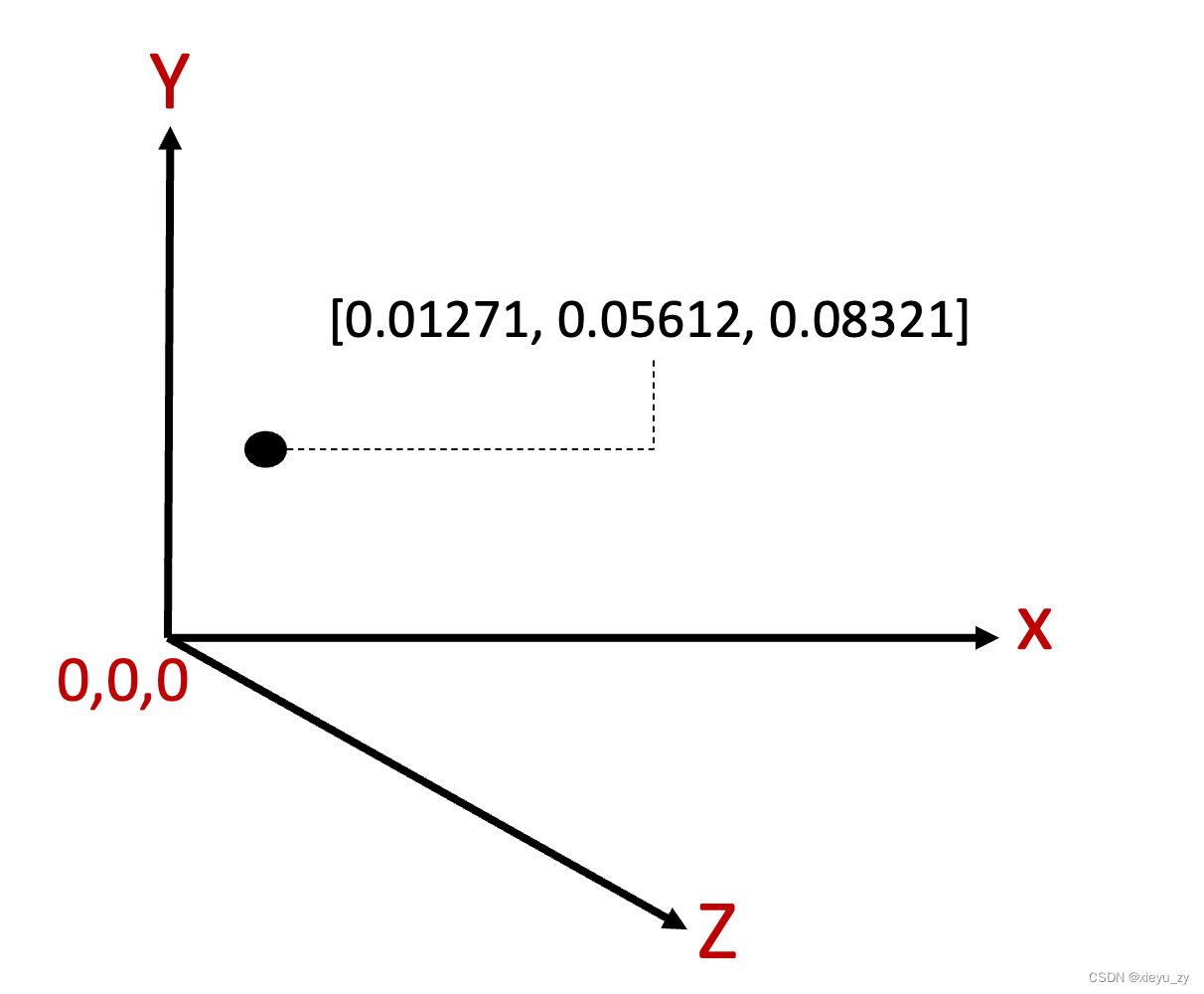 相应的,任何一个3维数据始终能在“三维空间上”能找到一个合适的Point“位置”,如下图所示(在下已尽力,不过很不幸此图依然很不形象,请脑补,^_^):
