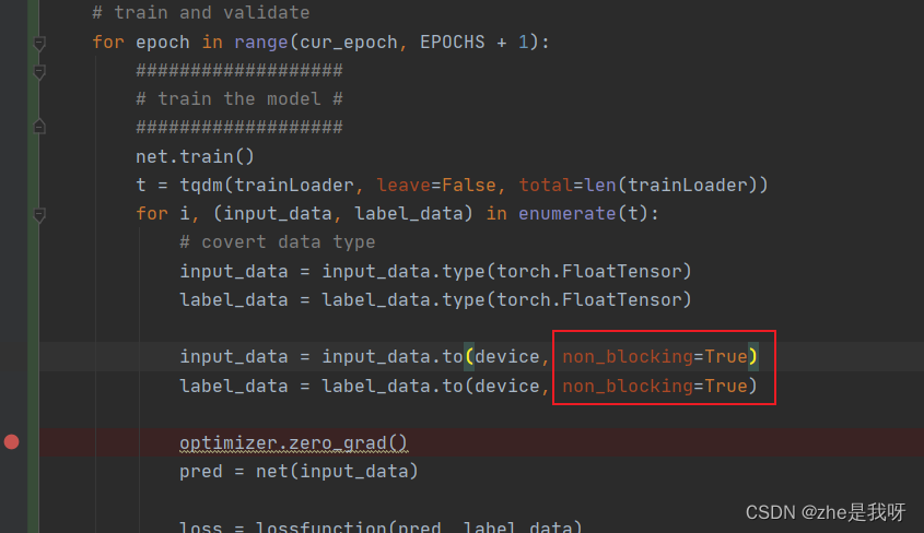 主要是两个参数:pin_memory=True 和 non_blocking=True,原理就是利用 CUDA 多流进行异步传输,也就是在GPU计算的时候进行 CPU=>GPU 间的数据传输。