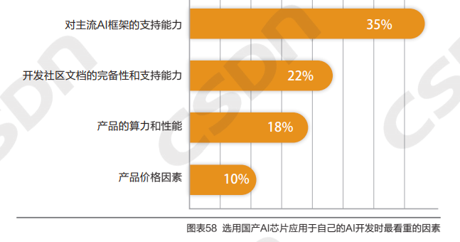 35% 开发者选用国产 AI 芯片应用于自己的 AI 开发,最看重对主流 AI 框架的支持能力