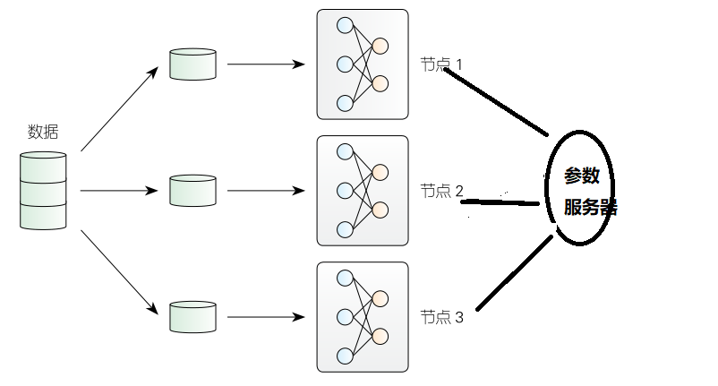 参数服务器上面存放全局共享的模型参数。