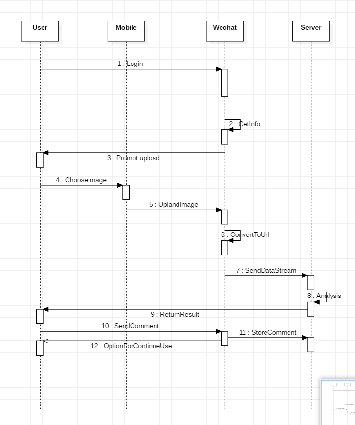 - 项目性质为科研项目,由于是依托算法研究产生产品,故对于产品本身性质并不明确,通过与老师交流后初步定义为基于微信前端与后台学习框架交互的识别平台,主要以微信小程序的交互形式开放给用户。