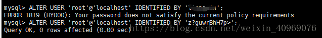 mysql默认是修改密码后才能进一步操作其他事项,而且密码规则有多种,要符合才能通过