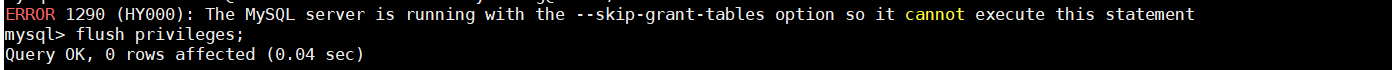 //出现如下错误时可以在mysql下输入: flush privileges 刷新配置信息。