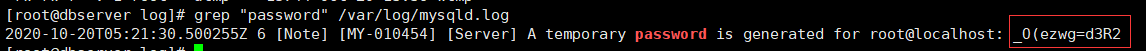 命令: grep "password" /var/log/mysqld.log