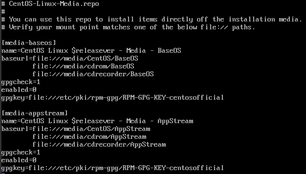 vi CentOS-Linux-Media.repo #编辑主配置文件