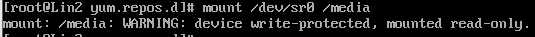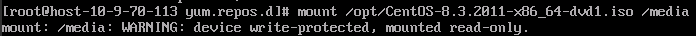 mount /opt/CentOS-8.3.2011-x86_64-dvd1.iso /media #输入到"o"时可以稍加停顿的按两次tab键进行补全,后面的media就是我们的挂载路径(注:这是云服务实训平台的挂载路径,若是VMware下则是mount /dev/sr0 /media)