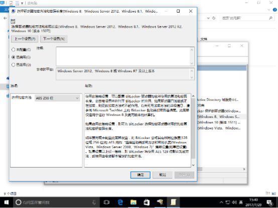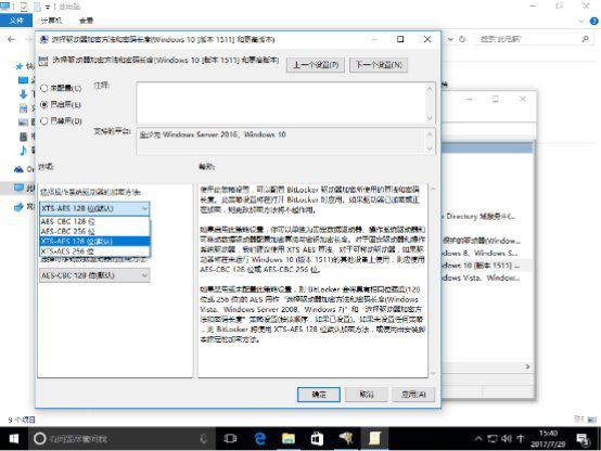 对于Windows Vista到Windows 10首个正式版,建议选择AES 256位。