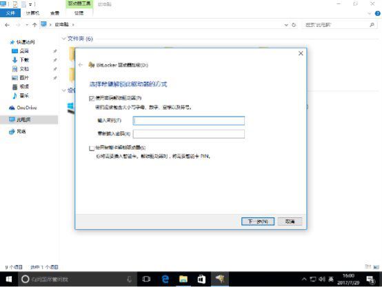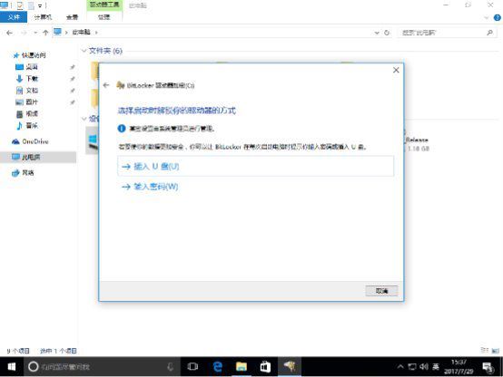 执行到这个步骤的时候,系统会问你是打算利用U盘解密还是输入密码解密。